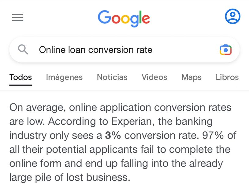 Según Experian, la industria bancaria solo genera una tasa de conversión del 3% para solicitudes iniciados en línea.